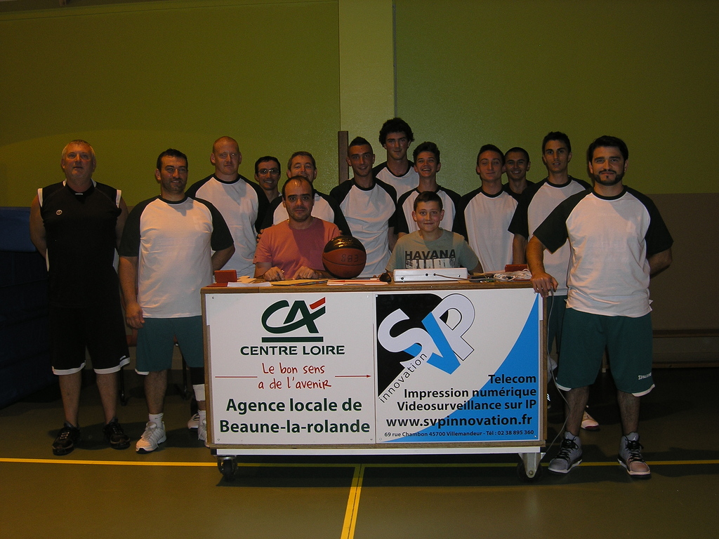 Voici la nouvelle table de marque du club, ainsi que nos sponsors : le Crédit Agricole et SVP Innovation et l'équipe de séniors masculins vêtus de leurs nouveaux surmaillots.