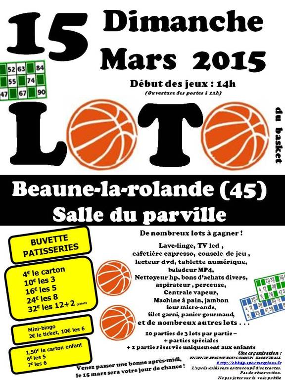 On vous attend tous le dimanche 15 mars dès 13h pour participer à notre loto.
