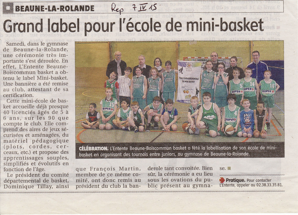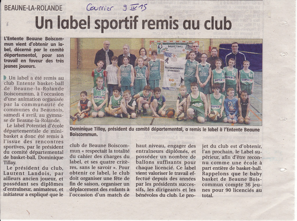 Le samedi 4 avril, le club a organisé une après-midi consacrée aux très jeunes licenciés du club au cours de laquelle le comité Départementale a remis officiellement le Label Ecole Départementale de Mini-basket. Merci à tous ceux qui ont été présents et à